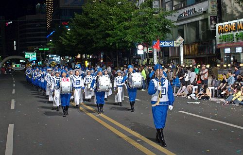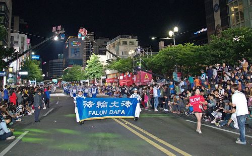 【明慧网二零一七年六月二日】二零一七年五月二十七日,由法轮功学员组成的韩国天国乐团受邀参加了大邱市举办的“2017 colourful庆典”大游行,吸引了众多人观看,观众纷纷竖起大拇指称赞:“你们最棒,辛苦你们了!”主持人介绍天国乐团时也赞美说:“天国乐团帅了,闪闪发光。让我们一起给法轮功天国乐团鼓掌。”