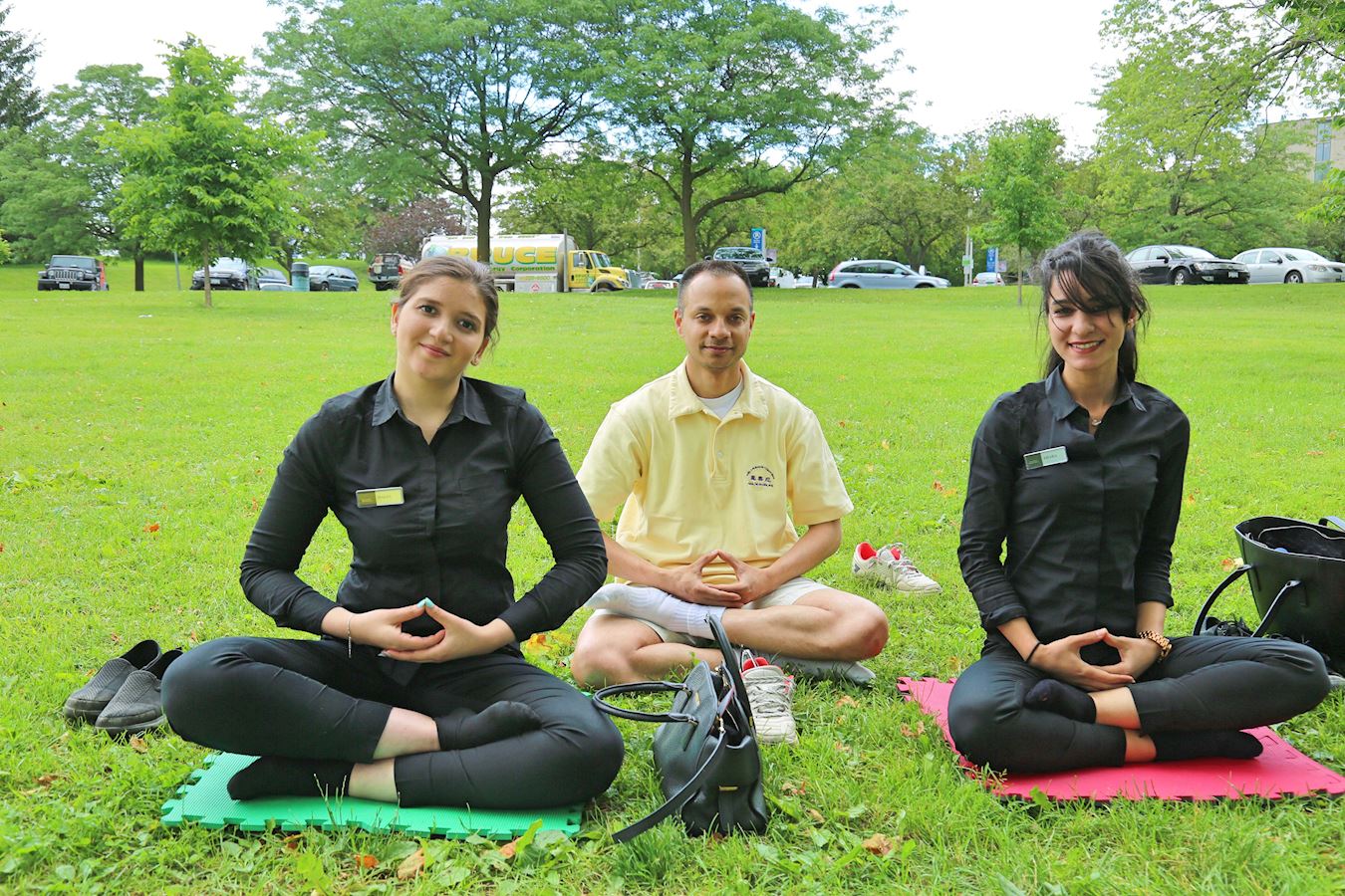 Dalia和Zhara都是渥太华大学的学生,二十五日,她们为参加活动来到姆尼斯河畔,看到法轮功学员缓慢圆的炼功动作,立刻被吸引,并要学习打坐。