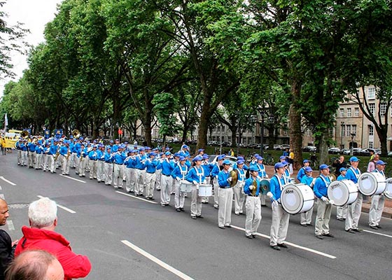 六月二十四日,来自德国、英国、法国、瑞士、奥地利等国家的法轮功学员参加了在杜塞尔多夫的游行。民众看到法轮功学员盛大游行后,谴责中共的迫害。