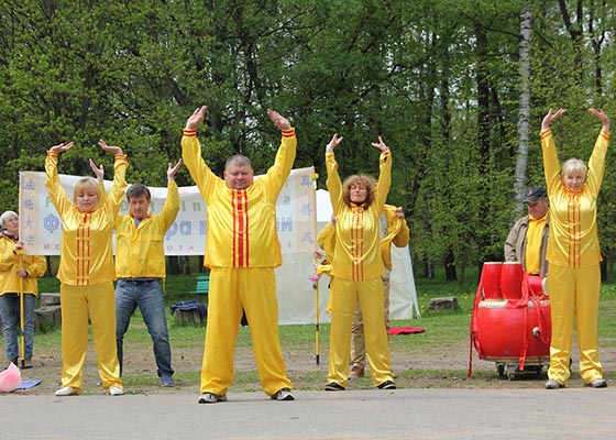 五月二十七日,圣彼得堡法轮功学员在城市北部的圣彼得堡皇家领土公园举行弘法讲真相活动。许多民众了解真相后签名支持学员反迫害。