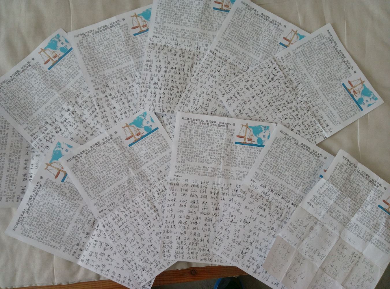 他们在举报信中说:恶首江泽民滥用职权,导演“天安门自焚”骗局,抹黑诬陷法轮功,挑起民众对法轮功的仇恨,导致千万个家庭妻离子散、家破人亡;十多年来江泽民腐败治国、淫乱朝政、出卖国土、粪土百姓、打击良善,甚至活摘法轮功学员的器官,使众多中国人已经丧失了道德的底线。信中一致要求中共立即停止迫害法轮功,希望最高检察院尽快立案调查,将迫害法轮功的元凶江泽民绳之以法,还法轮大法公道!