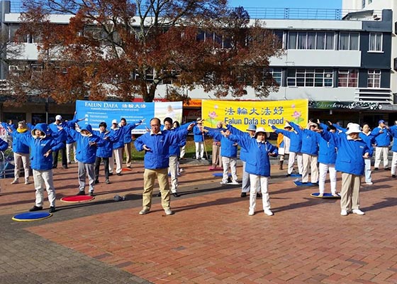 新西兰汉米尔顿市中心举行集体炼功(图)