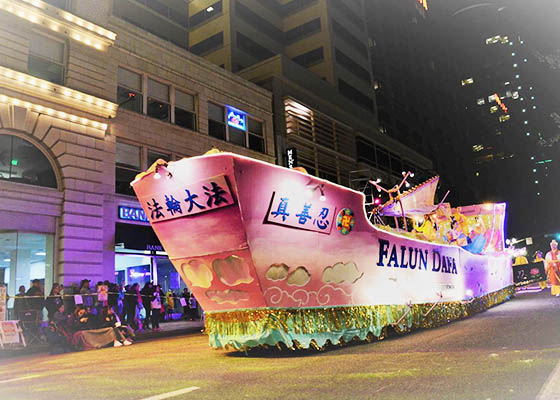 法轮功花车获玫瑰节星光游行最高奖(图)