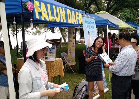 七月八日至九日,明尼苏达州法轮大法学员应邀参加了一年一度的龙舟节庆祝活动。热闹的龙舟节上,很多人在法轮功的真相摊位前驻足了解真相。