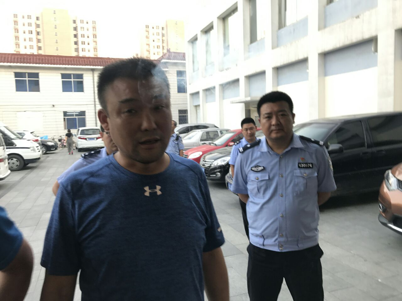 ![]() 七月十二日凌晨三点半左右,来了十四辆警车、一车特警抢夺杨玉永遗体,一名警察在现场录像。 |
