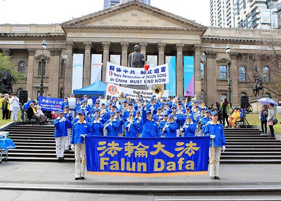 七月十五日,墨尔本法轮功学员在市中心举行了遊行集会,抗议中共对法轮功自一九九九年七月二十日开始的血腥迫害。