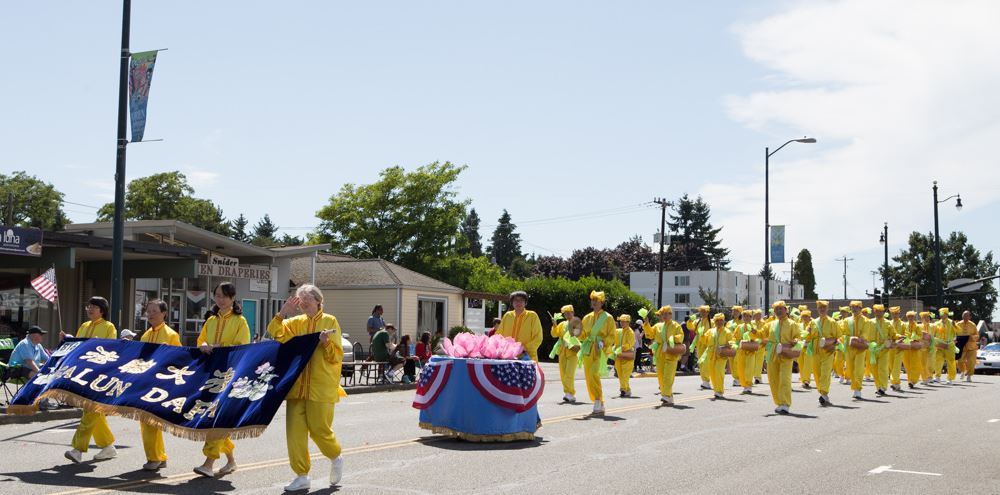 七月四日,作为社区一员,西雅图地区法轮功学员们首次参加了位于华盛顿州西雅图市南边的布里恩市(City of Burien)的第九十六届美国独立日大游行。布里恩市距离西雅图市中心仅有二十五公里,而布里恩市独立日大游行是西雅图地区最古老的独立日庆典。