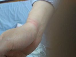 图:王超被他们用手铐铐在手上及反扭手臂留下的伤痕