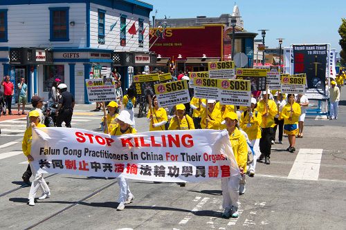 【明慧网二零一七年七月十六日】(明慧记者贾维、王英美国旧金山报道)二零一七年七月十五日,旧金山湾区的法轮功学员在市区旅游景点举行大游行,呼吁国际社会关注中共对法轮功的迫害,共同解体中共、制止迫害。 今年的七月二十日是法轮功学员反迫害十八周年。