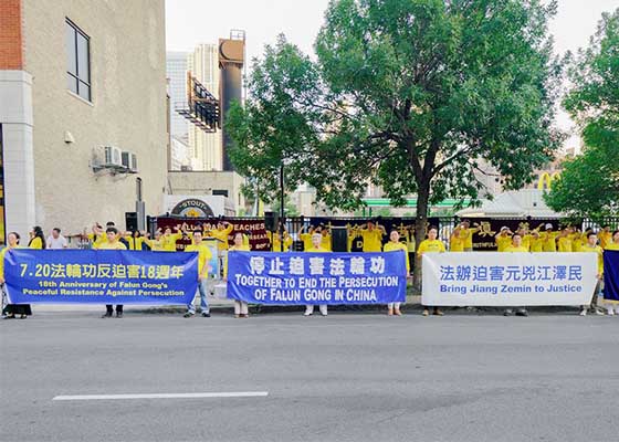 七月十五日,伊利诺伊州法轮功学员来到中共驻芝加哥领事馆前,呼吁国际社会制止中共自一九九九年七月二十日开始对法轮功长达十八年的残酷迫害。