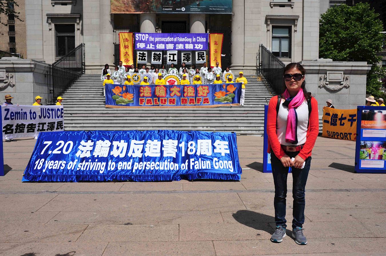 '图14:杜雪琴女士来自中国福建省,她表示对法轮功的敬意。'