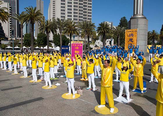 七月十五日一早,旧金山湾区的法轮功学员来到旧金山渔人码头附近的繁华港口,举行集体炼功和大型游行活动,并告诉民众法轮功的真相。