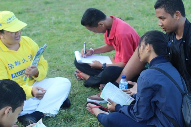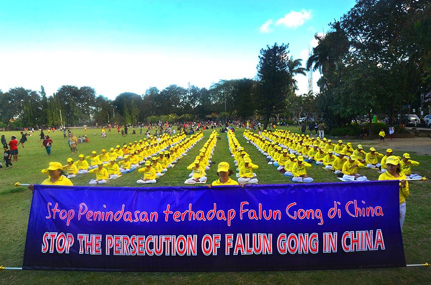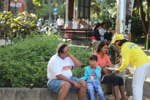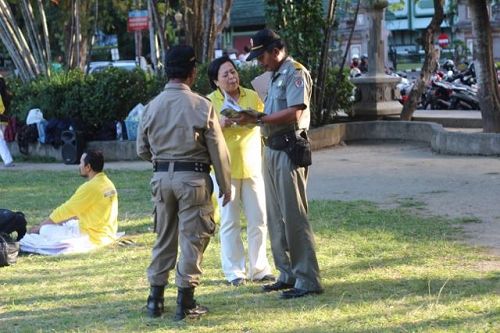 数百巴里岛法轮功学员聚集在登巴萨大公园、平静整齐地坐着,吸引了许多游客的目光,也因此使更多的人能有机会了解到法轮功学员被迫害的真相。不少游客用行动来支持法轮功、参与诉江征签,表达停止迫害的心声。