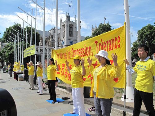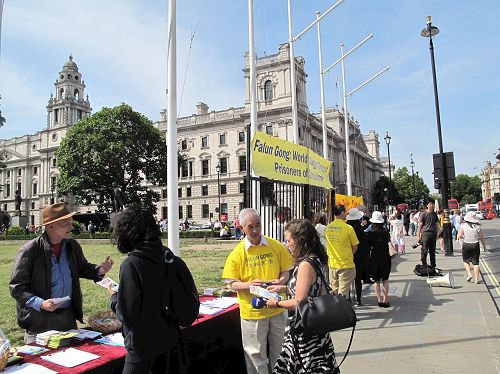 法轮功学员在英国议会大厦前揭露中共迫害(图)