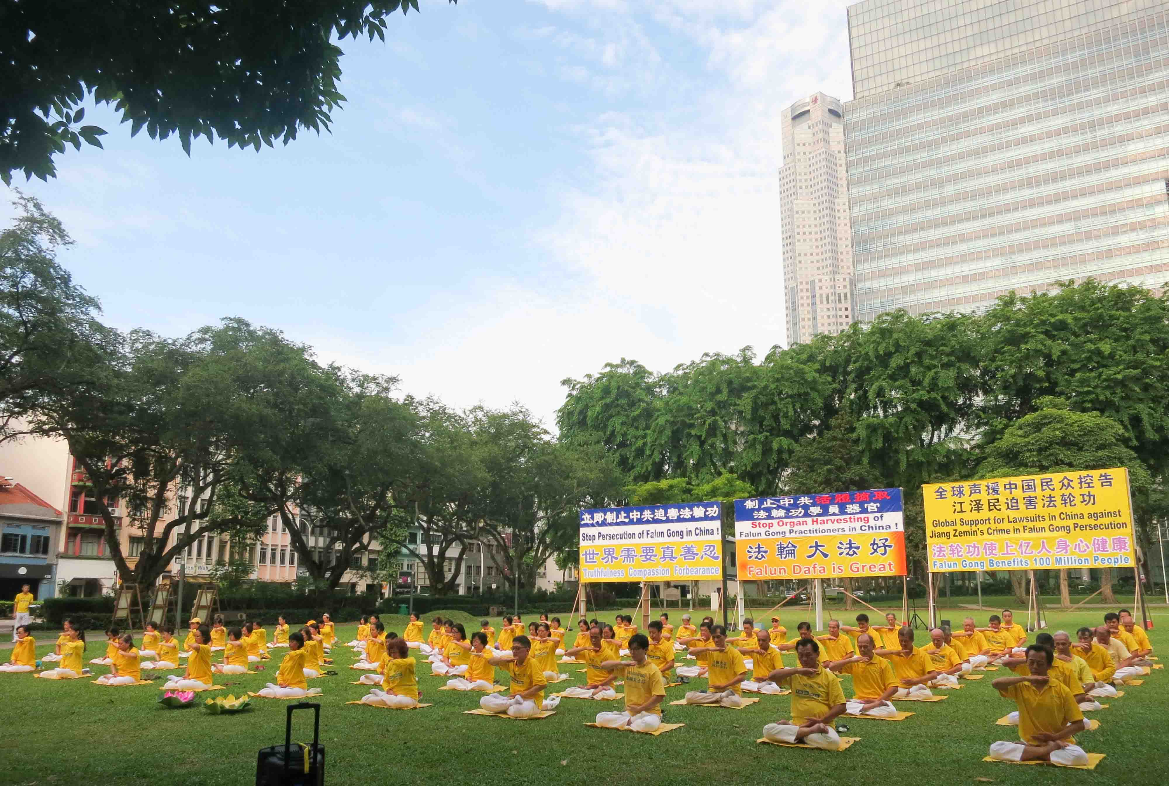 【明慧网二零一七年七月二十一日】二零一七年的七月二十日是法轮功学员和平反迫害十八周年的纪念日。连日来,世界各地的法轮功学员举办各种活动,呼吁共同终结迫害。七月十七日,新加坡法轮功学员在芳林公园以功法演示、反活摘征签、烛光悼念、真相图文展示等形式,分享法轮大法的美好,悼念被中共迫害致死的中国同修。