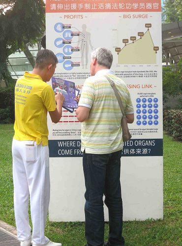 来自德国的商务顾问John曾在慕尼黑看到过法轮功学员举办的活动。此次新加坡之行让他有机会更深入地了解真相。他赞许学员们在不公的镇压下能够站出来发声反迫害。