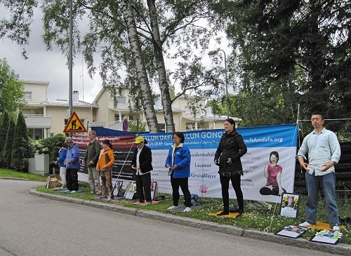 芬兰法轮功学员中领馆前抗议中共迫害(图)
