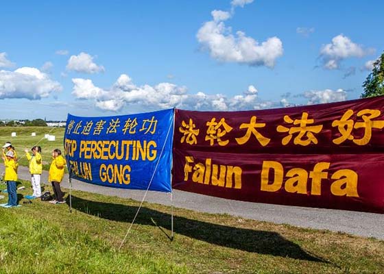 七月二十日上午,瑞典法轮功学员在中共驻瑞典使馆前等不同地点,展开了一整天的讲真相与揭露中共迫害的系列活动。