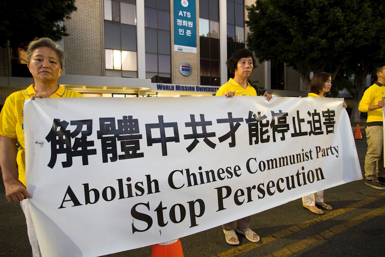 夜晚八点,中领馆前陆续聚集了洛杉矶的部份法轮功学员。他们用烛光悼念被中共迫害致死的法轮功学员,并呼吁立即停止迫害、法办元凶江泽民。集会中,三位发言人陈述亲身经历,证实中共从一九九九年至今的暴行。最让人惊愕的是,对法轮功的迫害仍未停止,他们呼吁全社会关注。
