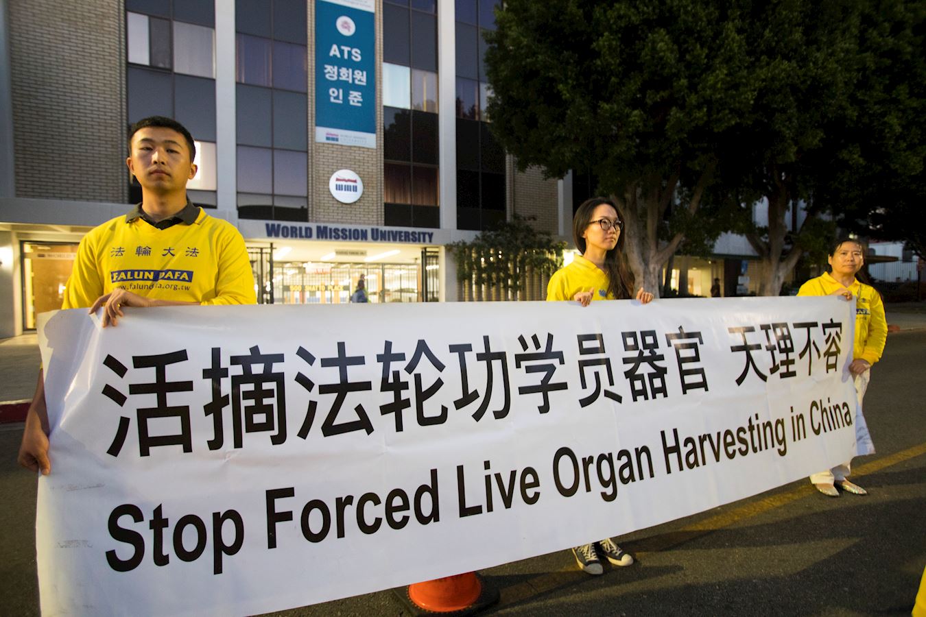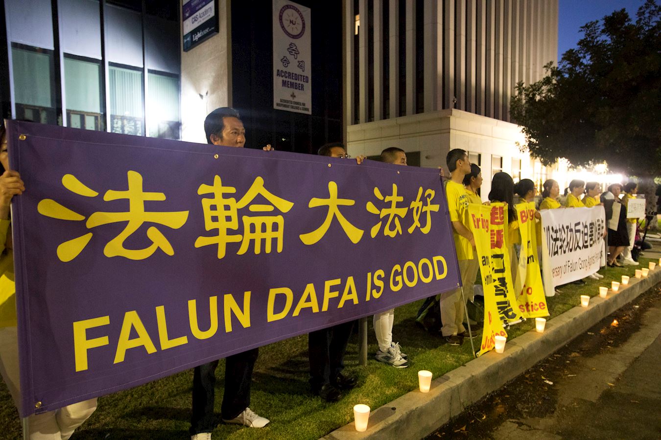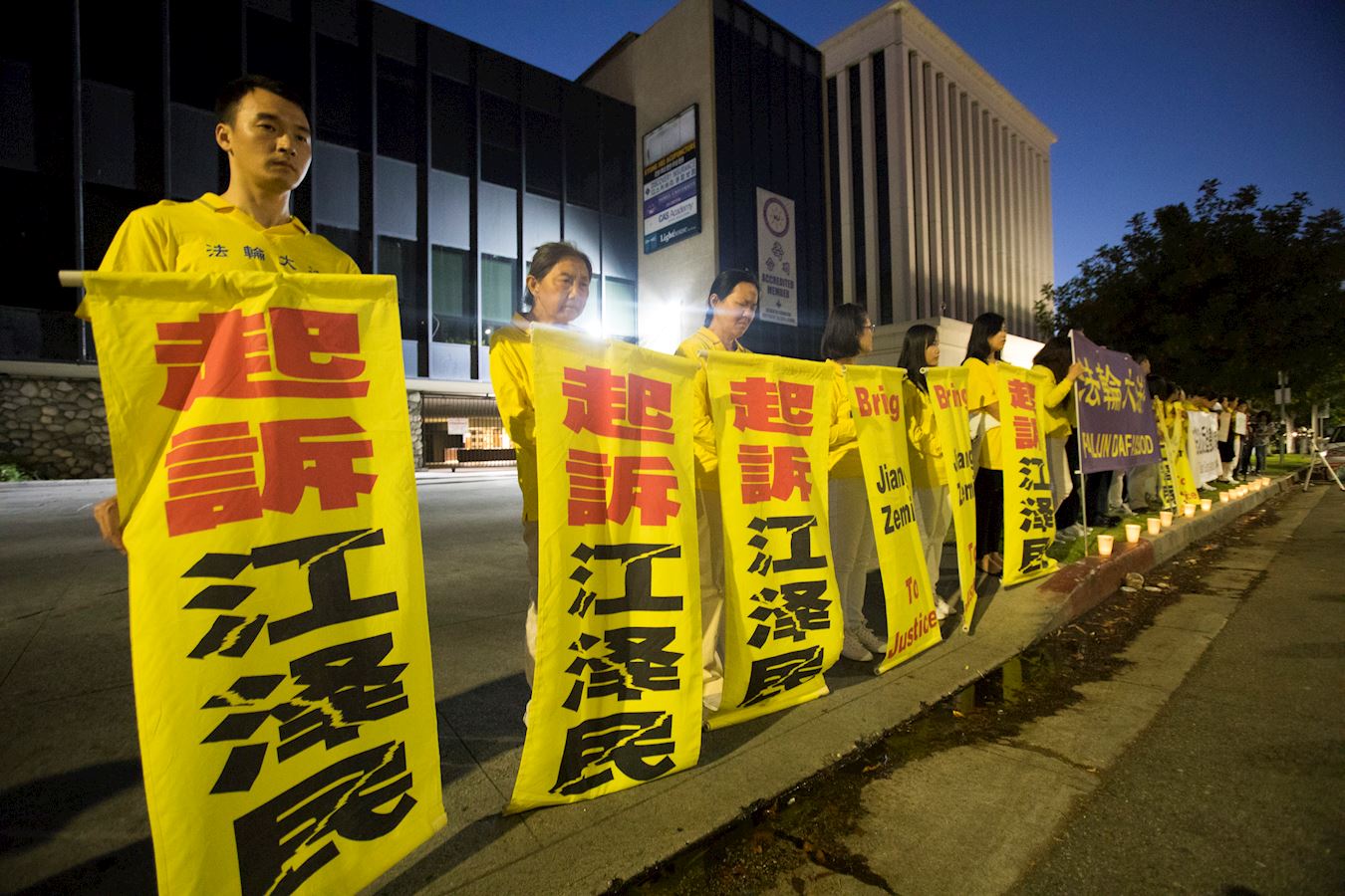 '图1~9:法轮功学员在洛杉矶中领馆前举行烛光夜悼'