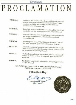 现今全世界越来越多的人加入修炼这美好的古老上层功法修炼—— 法轮大法,修炼净化人们的心灵、使人们的身体充满能量,身心道德的提高创造良性的社区。西雅图有幸成为全球诸多认识到法轮大法的美好的城市之一。