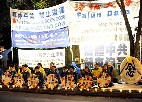 澳洲墨尔本法轮功学员中领馆前举行烛光夜悼(图)