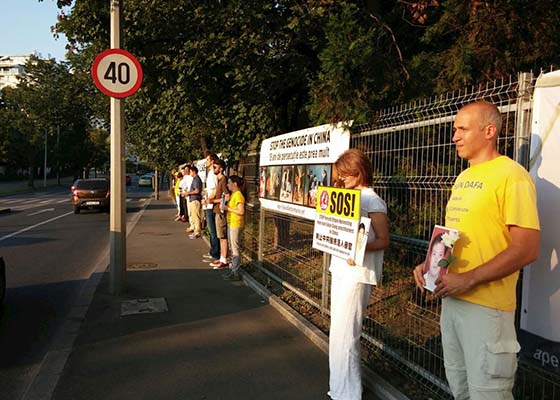 罗马尼亚法轮功学员来到中共使馆前,悼念十八年来被中共残酷迫害致死的法轮功学员,并抗议中共对法轮功的持续迫害。