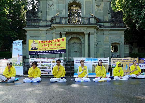 瑞士法轮功学员集会呼吁制止中共迫害(图)
