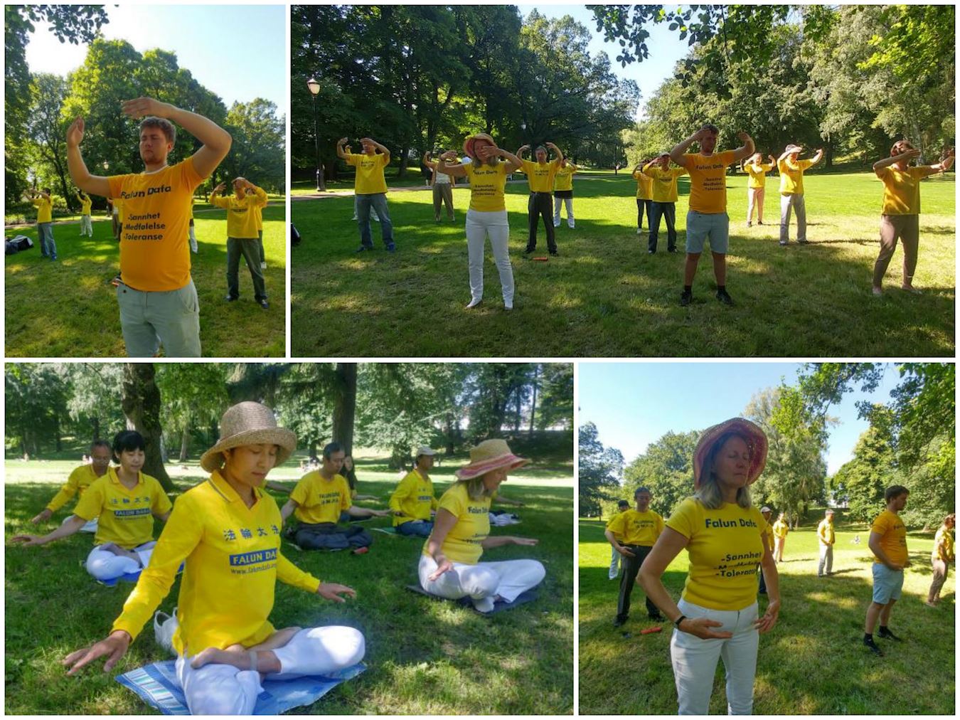 图2:挪威法轮功学员在皇宫公园集体炼功,展示法轮功的祥和美好