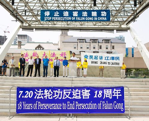 “十八年的迫害,太长了。”他说,“作为省议员,我想向你们保证,我们将尽我们所能,继续在安省议会提倡人权”。