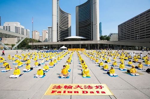 ![]() 图1~2:法轮功学员在多伦多市政厅的内森菲利普斯广场举行反迫害集会 |