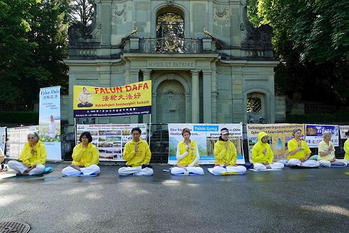 【明慧网二零一七年七月二十三日】二零一七年七月二十日,瑞士法轮功学员在瑞士首都伯尔尼(Bern)多个地方举办集会等系列活动,告诉民众法轮功的真相,并呼吁帮助制止中共对法轮功已经持续十八年的迫害。过往路人被学员的功法演示吸引,有的驻足了解法轮功,有的主动签名要求联合国及瑞士政府采取行动,共同制止中共迫害法轮功及活摘器官的罪行,还有的赞叹感谢法轮功学员为反迫害的付出。