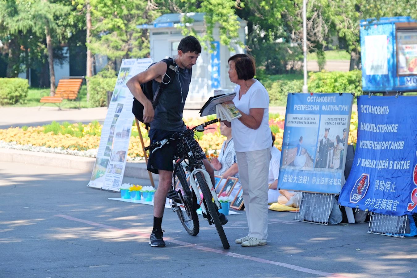 【明慧网二零一七年七月二十四日】二零一七年七月十六日和七月十九日俄罗斯伊尔库茨克市法轮功学员分别在本市沿岸街和中共总领事馆附近举行系列活动,告诉民众法轮功的真相,抗议中共对法轮功学员的、已经持续十八年的迫害,并呼吁制止迫害。
