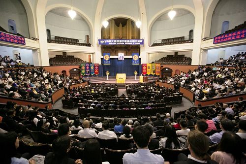 图1~3:二零一七年加拿大法轮大法修炼心得交流会于七月二十二日,在多伦多大学的“Convocation Hall”召开。