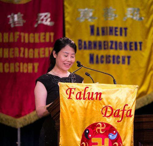 得法修炼了四年的姜女士,是二零一三年在中国得法开始修炼,于次年来到海外。她说:我记得在国内得法后,看《九评共产党》,觉得邪党太坏,太害人,中国老百姓被骗太可怜,于是就出去讲真相。到了海外,一直想到平台给大陆民众打电话讲真相。她在发言中交流了如何突破自己,给大陆民众打电话讲真相的经过。