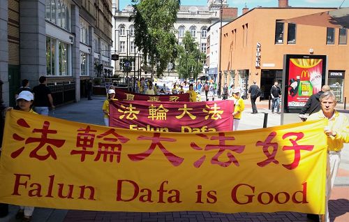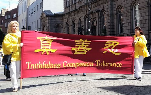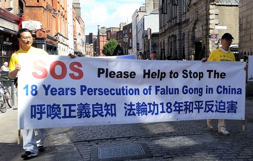 ![]() 图1~4:爱尔兰法轮功学员聚集在首都都柏林最繁华的商业街——格拉夫顿大街(Grafton Street),举行反迫害十八周年集会游行活动。 |