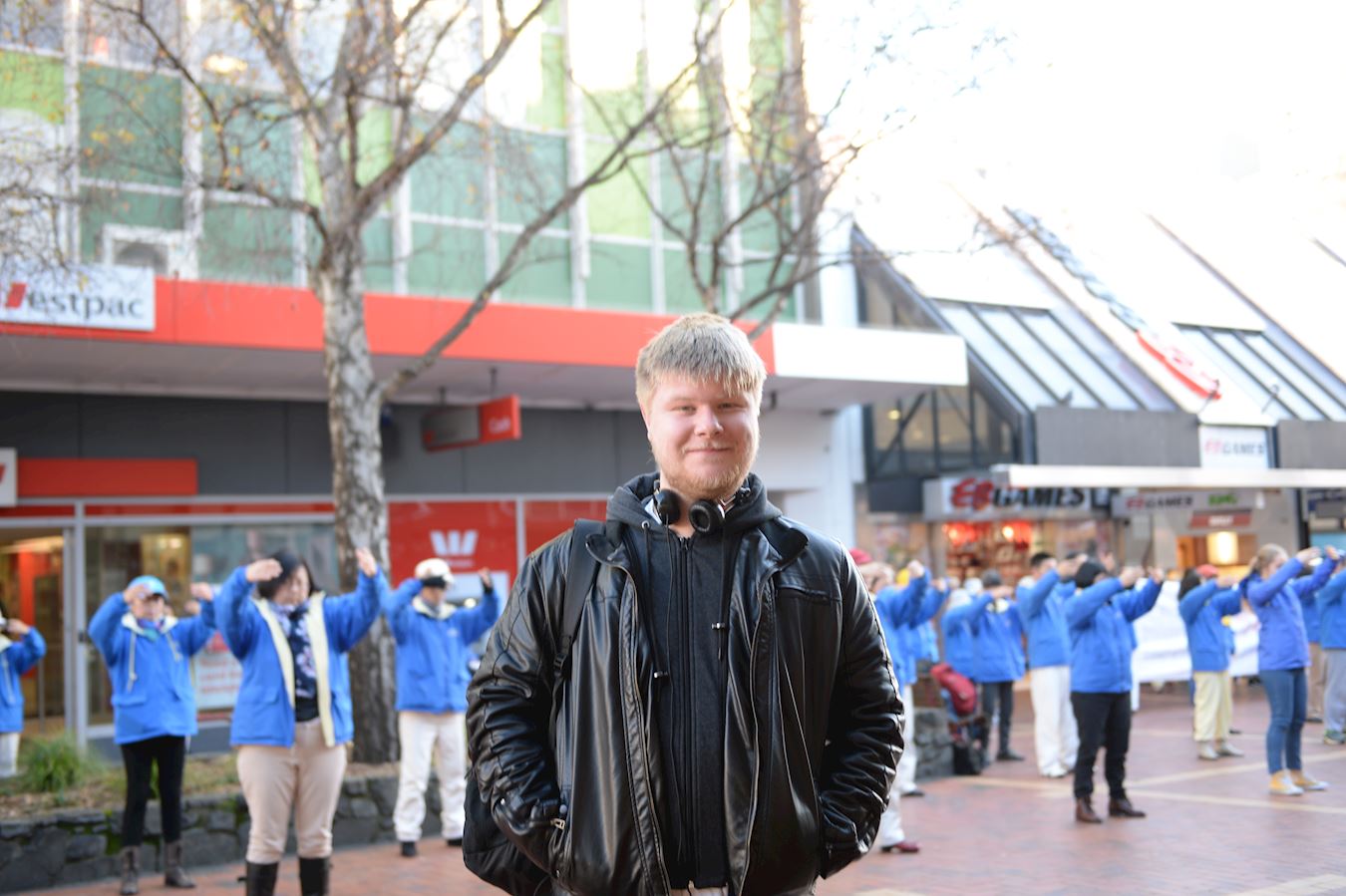 正在攻读记者专业的大学生Blaire在法轮功学员的活动前观看了很久。他说,法轮功给他感觉很平静祥和。对于中共的残酷迫害,Blaire认为所有人都应该关注这件事,“法轮功受到迫害是全世界的事情,而不只是中国。”他说,他会向更多的人传播迫害真相,这活动就是在唤醒人们睁开双眼。