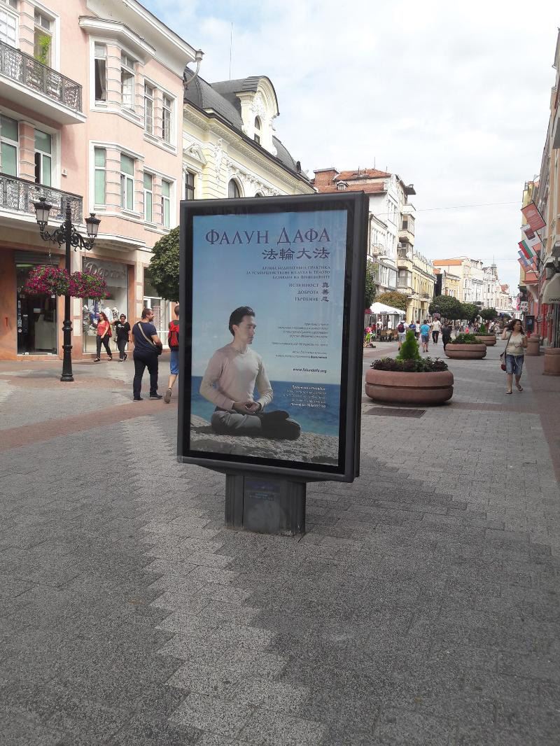 在普罗夫迪夫市中心,竖立着法轮功真相展板