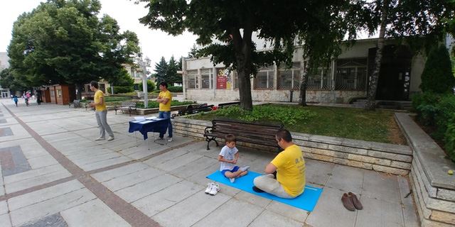 '在佩什泰拉市(Peshtera),年轻人在学炼法轮功'