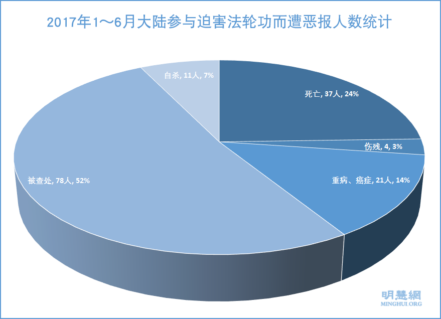 图1:2017年1~6月大陆参与迫害法轮功而遭恶报人数统计