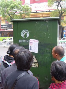 张贴资料的地方来了一批人看,看完了又来一批人看。先一、二个人看,再来几个人来看,然后是一大群人来看,大家都是踮着脚、挤着看(如图)。有的心情沉重的叹气:“唉,这世道不得了了,这世道不得了了。”有的痛骂公安局警察是狗、是土匪。有的愤怒地说:“人家炼功,也不要把人家搞死呀,信仰自由嘛。你共产党把人活活弄死了,你就是邪嘛。”