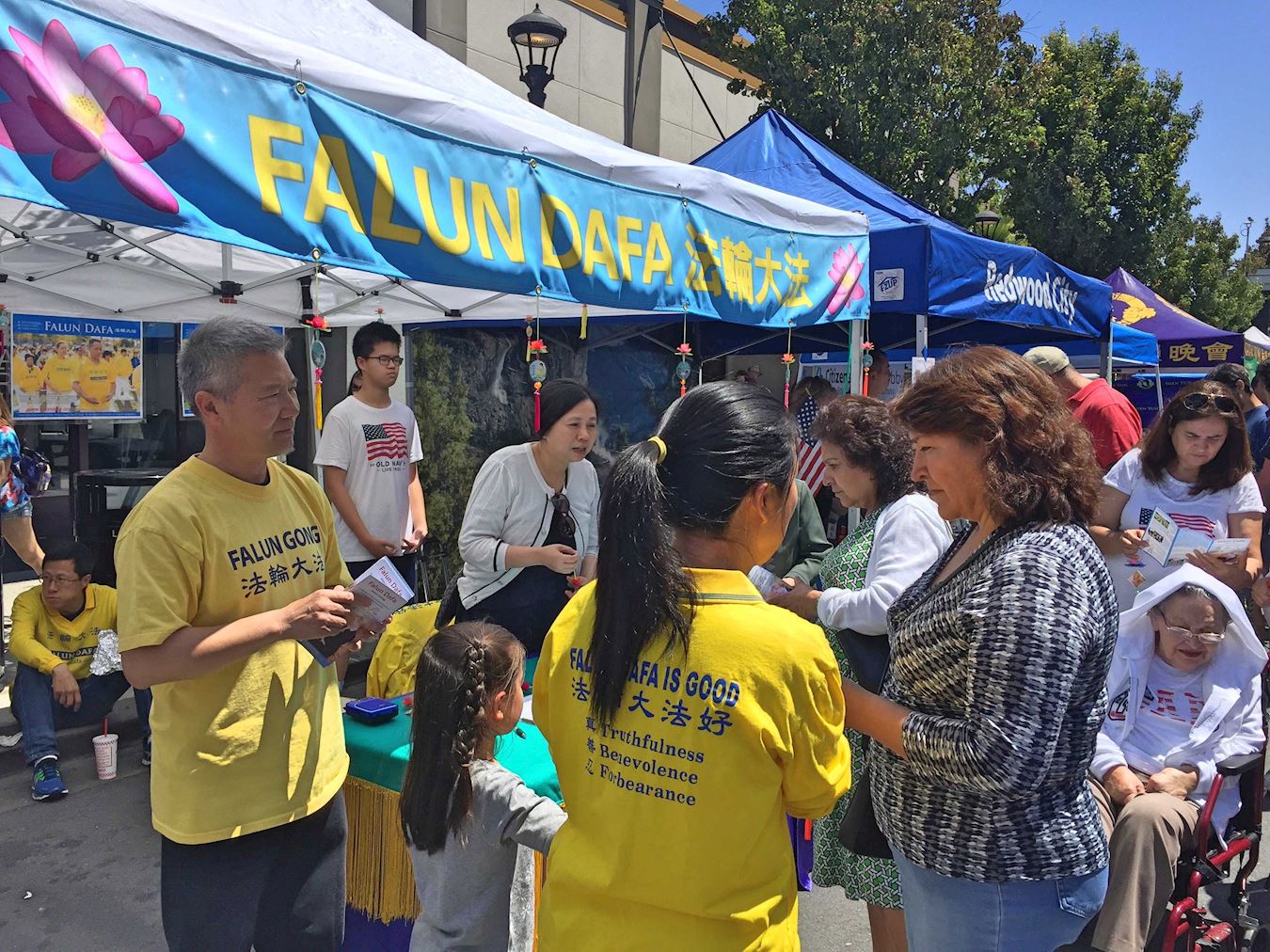 【明慧网二零一七年七月五日】(明慧记者王英、李若云美国旧金山湾区报道)二零一七年七月四日是美国独立日,旧金山湾区的法轮功学员应邀参加了红木城独立日游行,受到主办方和观众的欢迎。主办方感谢法轮大法的队伍带来祥和与能量。法轮大法花车获得了游行最高奖。法轮大法美西天国乐团获得了乐团社区组第一名。