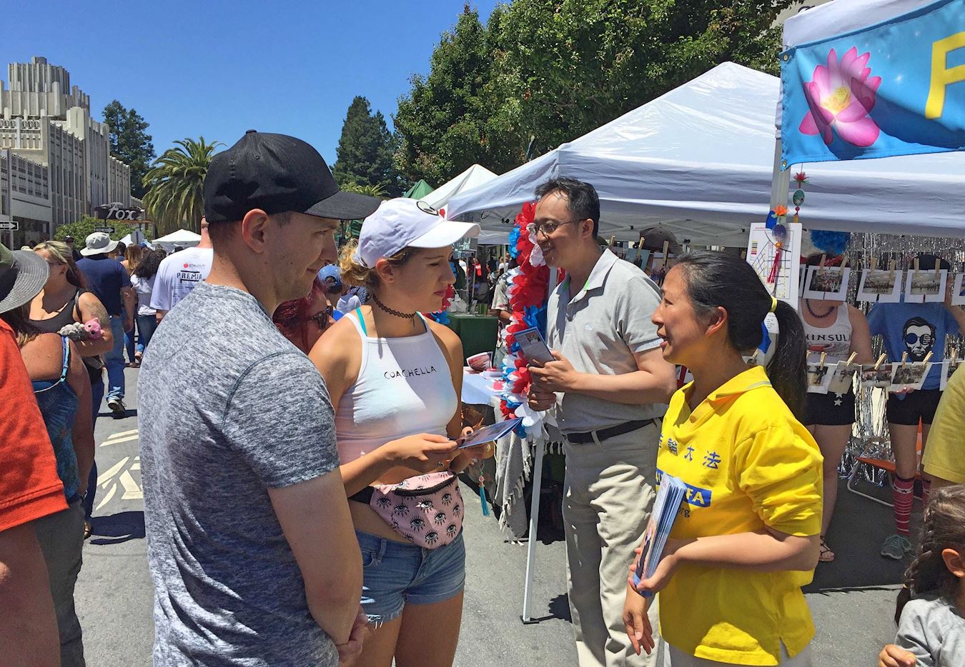 先生Ed问:“什么是法轮功?”当得知法轮大法是按照“真、善、忍”的原则做人修炼的功法,他马上抚着胸口说:“这个(功法)太好了,这三个字(真、善、忍)让我感到震撼,直达我的内心深处。”他用力的说:“谢谢他们把这么美好的东西带给我们!”