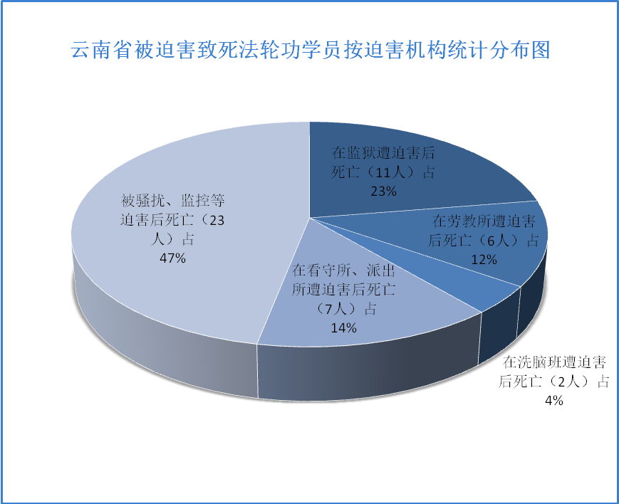 ![]() 图:云南省被迫害致死和在迫害中离世的法轮功学员按迫害机构统计分布图 |