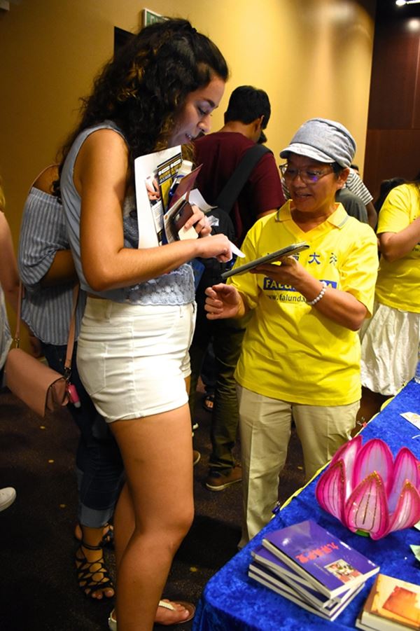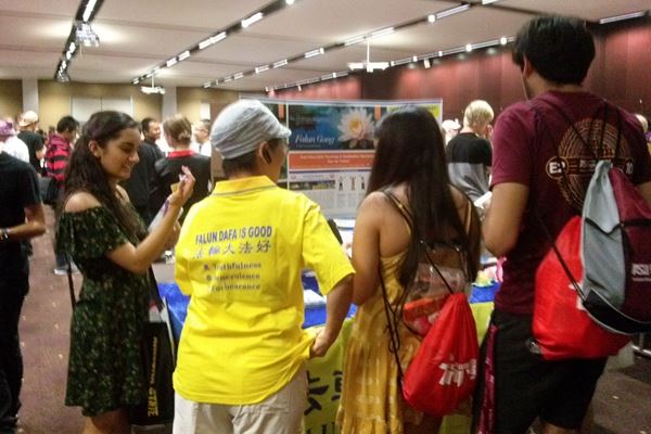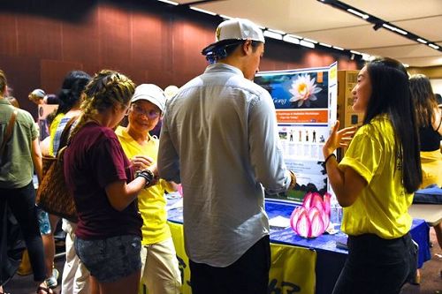 活动中,来到摊位了解法轮大法社团的学生络绎不绝,很多学生愿意排队等待留下邮件地址接收未来学功与其他社团活动的讯息,并对美丽的水晶莲花赞不绝口。有很多学生听说法轮功在中国大陆的被事实之后,严肃地表示自己愿意了解更多,在场的很多摊位也借此机会了解了法轮功这一平静祥和的功法。也有中国来的留学生对摊位展板拍照留念,一些中国留学生表示愿意接受三退(退出从中共党、团、队)或以前了解过真相。也有学生借机带走了中文真相资料回家。