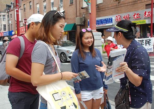 在费城中国城介绍法轮功(图)