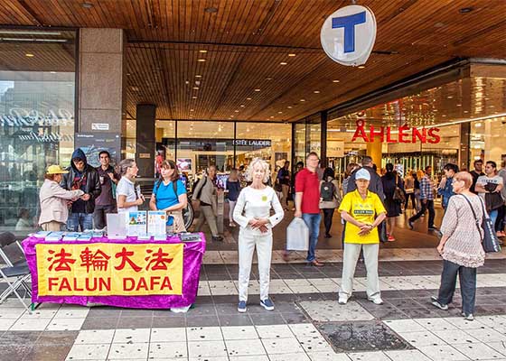 斯德哥尔摩市图书馆主办名为“世界最长书桌”的书展,负责人把整个书展最好的摊位安排给了法轮功学员,并表示:“最好的位置给最好的书”。