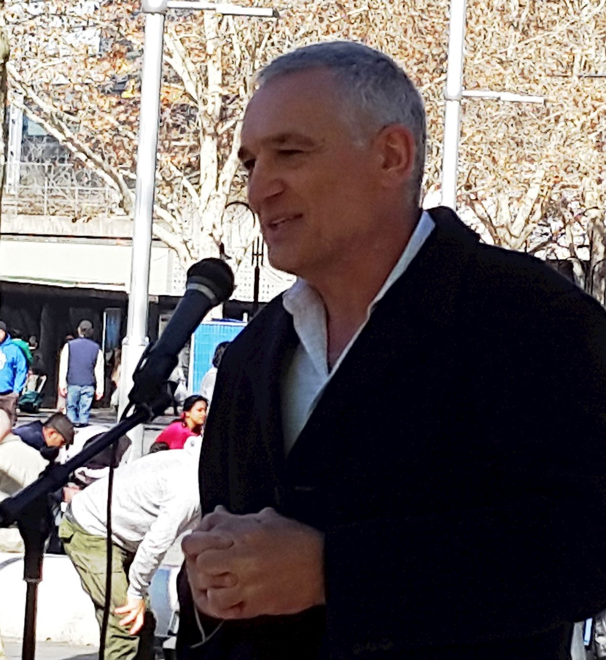 '图3:前帕拉玛塔市议员安德鲁·威尔逊(Andrew Wilson)在集会上发言'