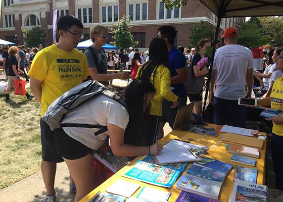 北加州奥克兰市聚集许多华人,8月26、27日,在该市中国城举行中秋街会,吸引各族裔游客光顾,法轮功学员也参加了街会并设立展位。