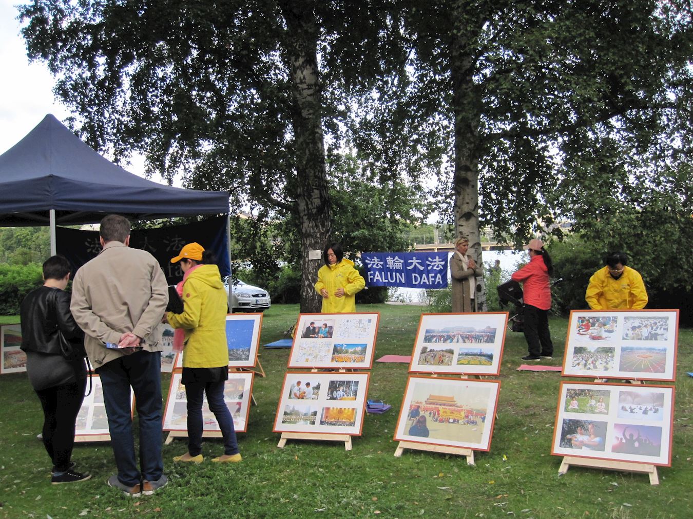 一位瑞典的老人,被展位上的图片吸引住了。她指着图片说:“看!这么多人炼功。”当她听学员讲述这些炼功人至今仍遭到中共迫害时,她眼眶中闪着泪水。等她平静下来后表示,在你们以前搞活动的地方已经签过名了,之前她曾听说过法轮功。